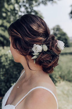 Für euren Hochzeitstag kreiere ich zeitlose, typgerechte Looks, die euch entsprechen und den ganzen Tag tragen. In einem Probetermin in entspannter Atmosphäre entwickeln wir gemeinsam euer Styling – individuell, stimmig und passend zu Outfit und Persönlichkeit. Auf Wunsch übernehme ich auch Makeup & Hairstyling für Familie und Gäste.